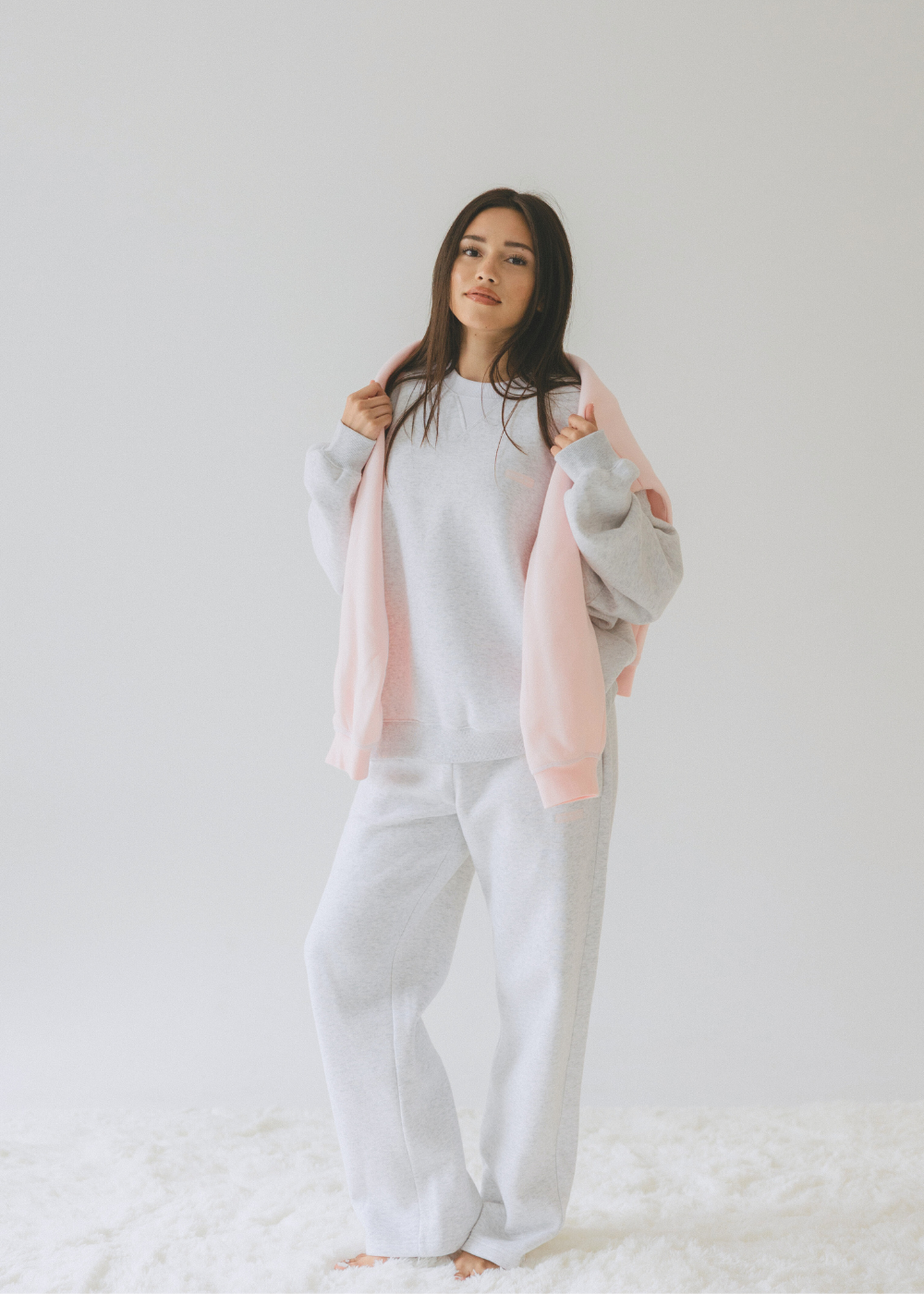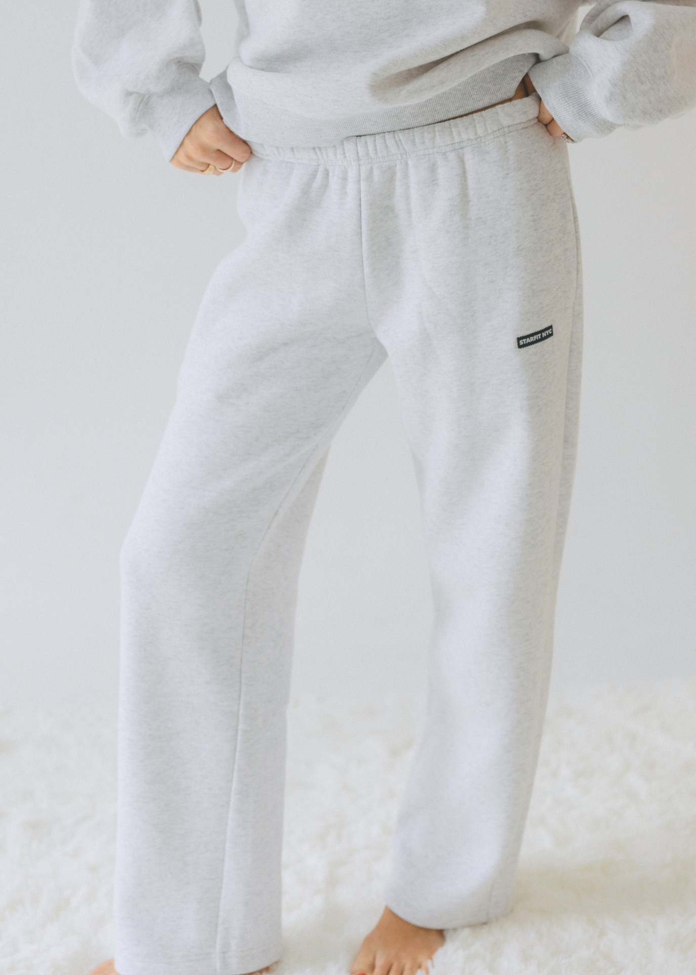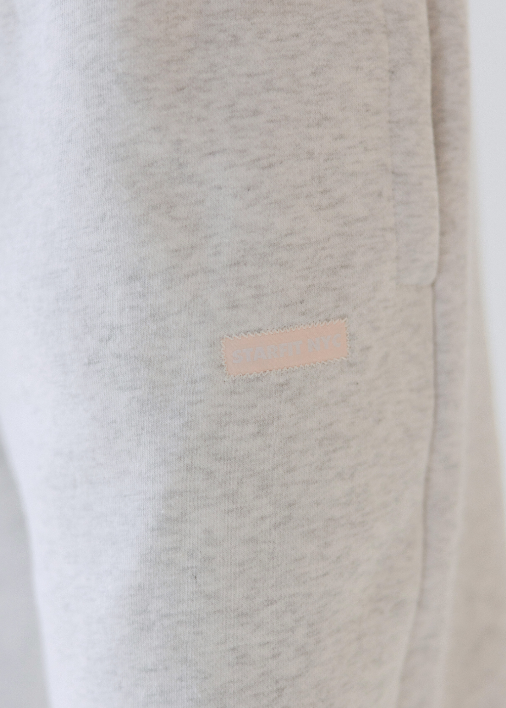 - Heather gray open sweatpants with inner drawstring